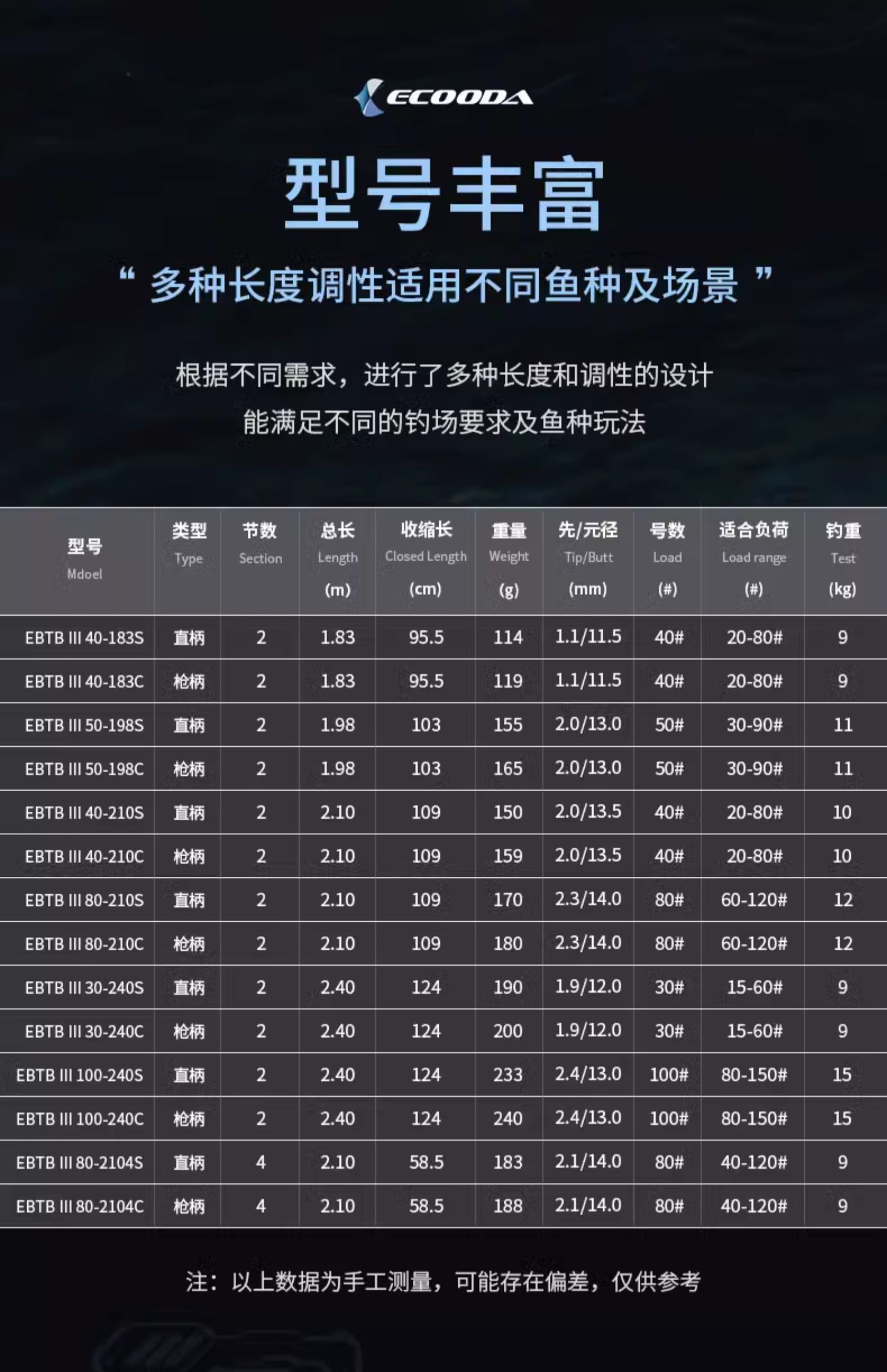 40号2.1米直柄(负荷20-80#/钓力10kg)