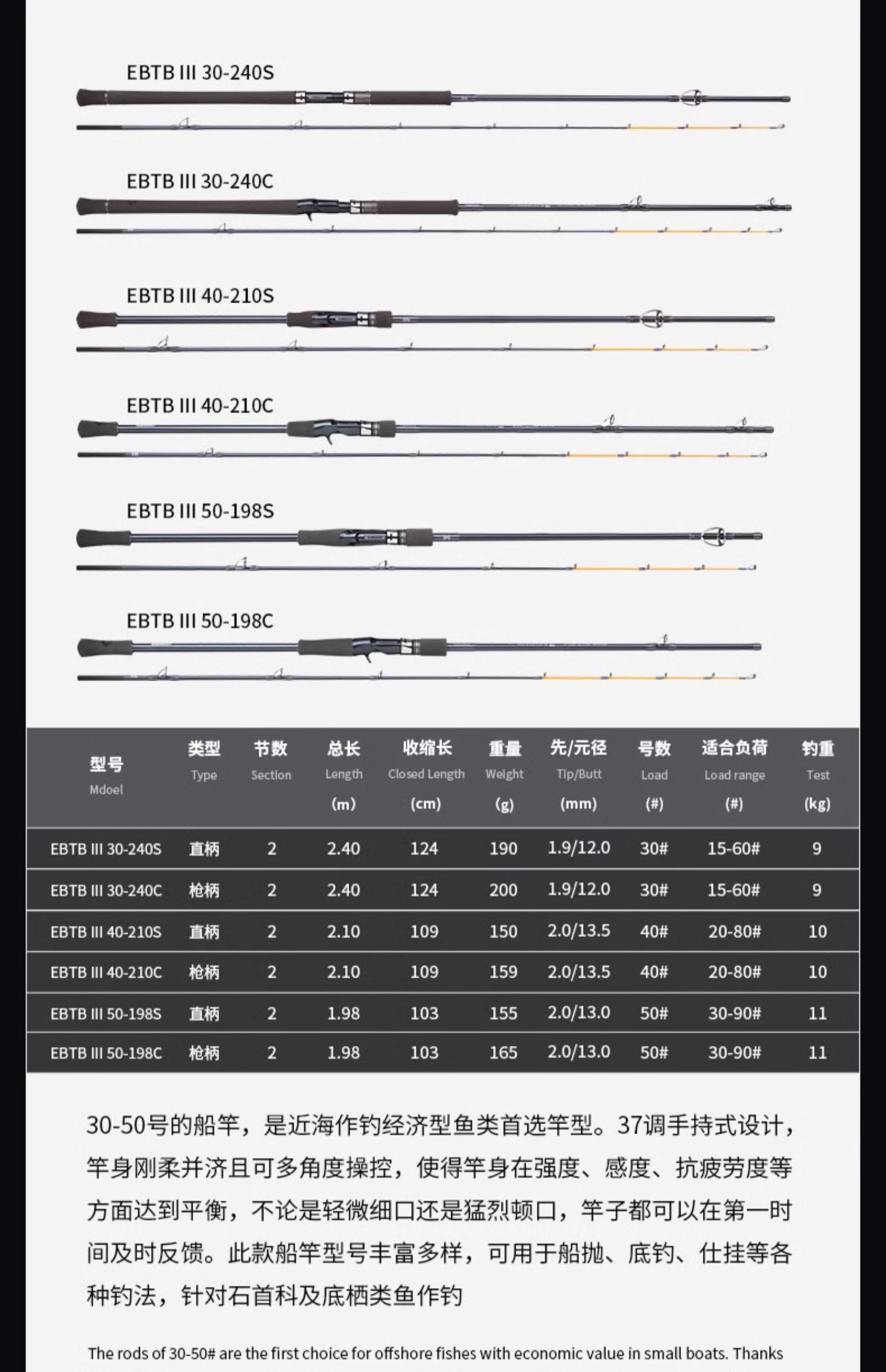 50号1.98米直柄(负荷30-90#/钓力11kg)