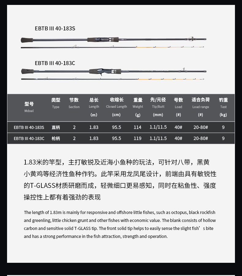 玻纤龙凤尾40号1.83米直柄(负荷20-80#/钓力9kg)