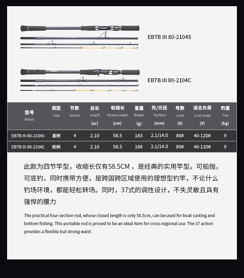 四节便携版80号2.1米直柄(负荷40-120#/钓力9kg)