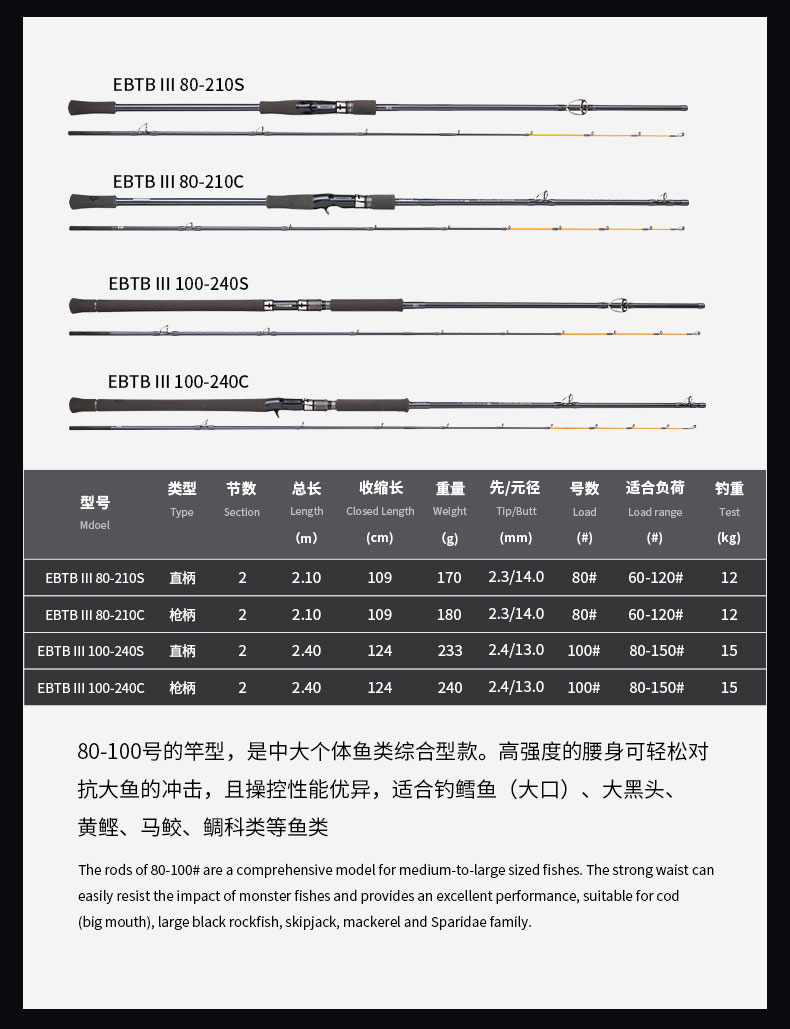 80号2.1米直柄(负荷60-120#/钓力12kg)