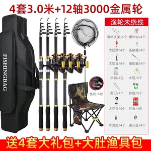 四套3.6米+13轴3000金属渔轮套装送凳子送抄网