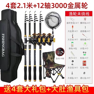 四套2.1米+13轴2000渔轮套装送凳子送抄网