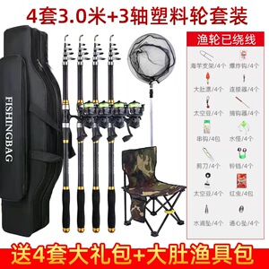 四套2.7米+3轴塑钢200渔轮套装送凳子送抄网