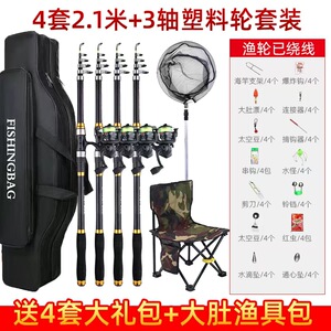 四套2.1米+3轴塑钢200渔轮套装送凳子送抄网