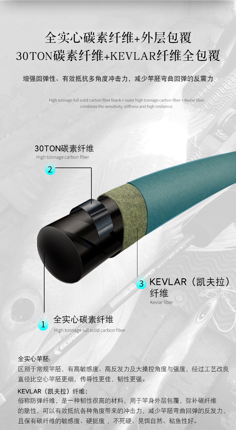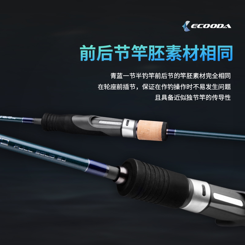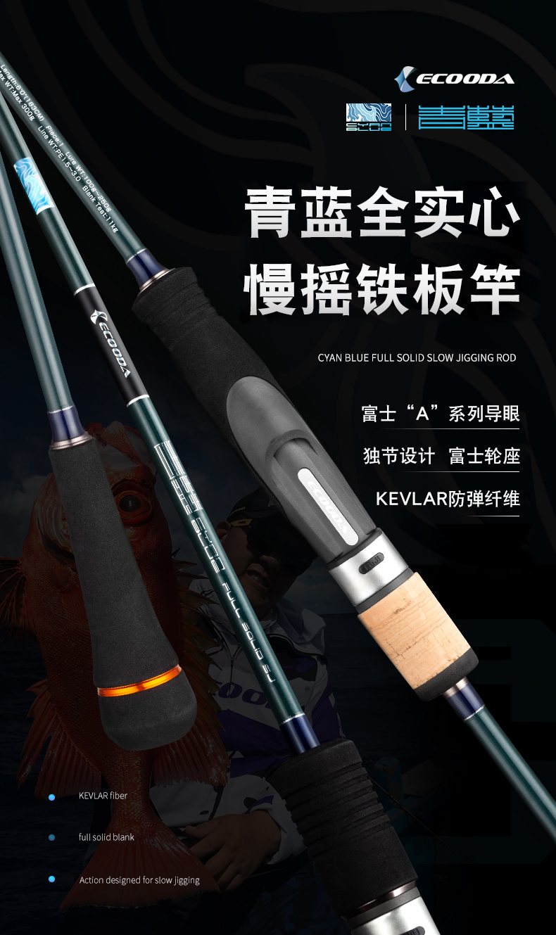 ECOODA/青蓝慢摇铁板竿近海船钓杆富士全实心碳素海钓竿特价清仓