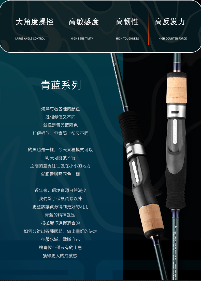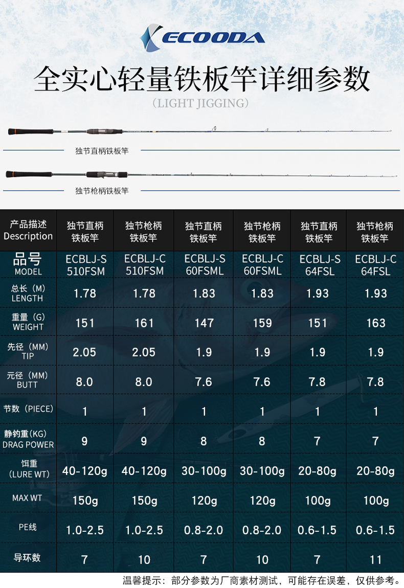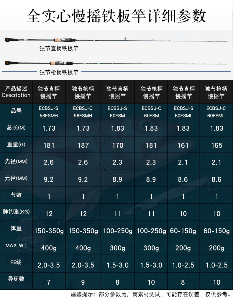 ECBSJ-S60FSML 直柄1.83米独节200g 青蓝一代慢摇铁板竿