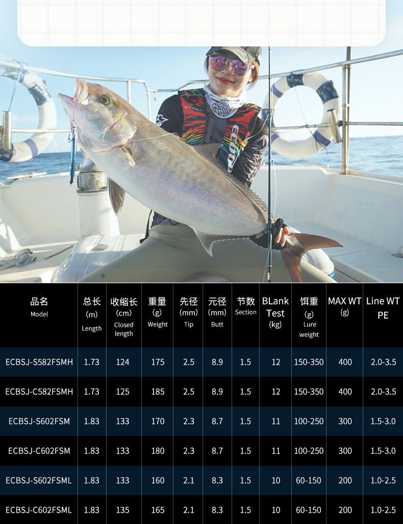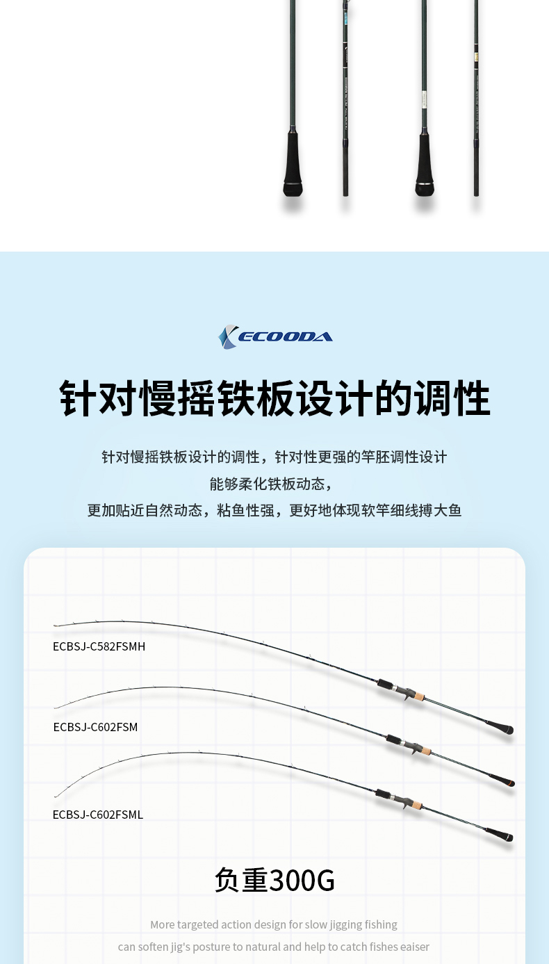 ECBSJ-S60FSM 直柄1.83米独节300g 青蓝一代慢摇铁板竿