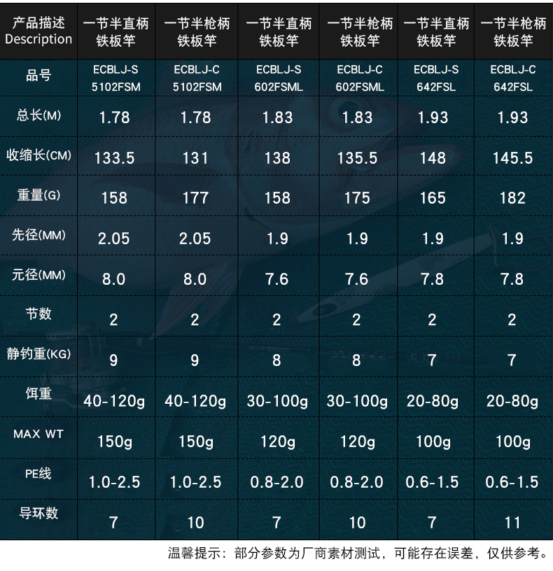 ECBLJ-S60FSML1.83米直柄独节120g 青蓝一代轻型铁板竿