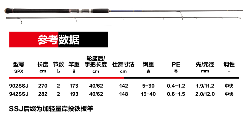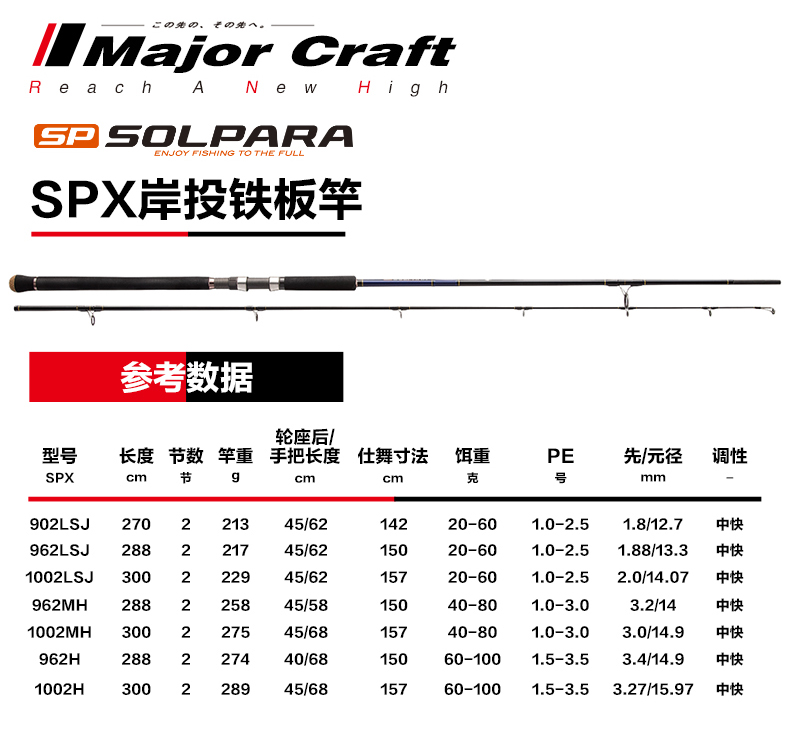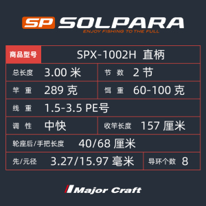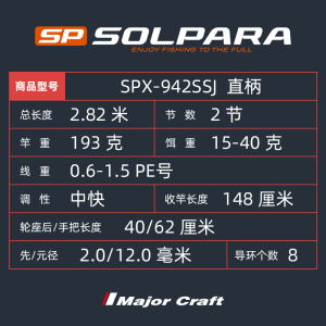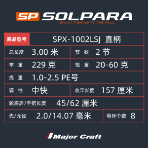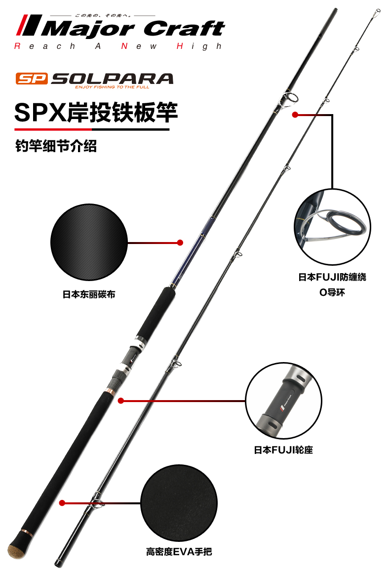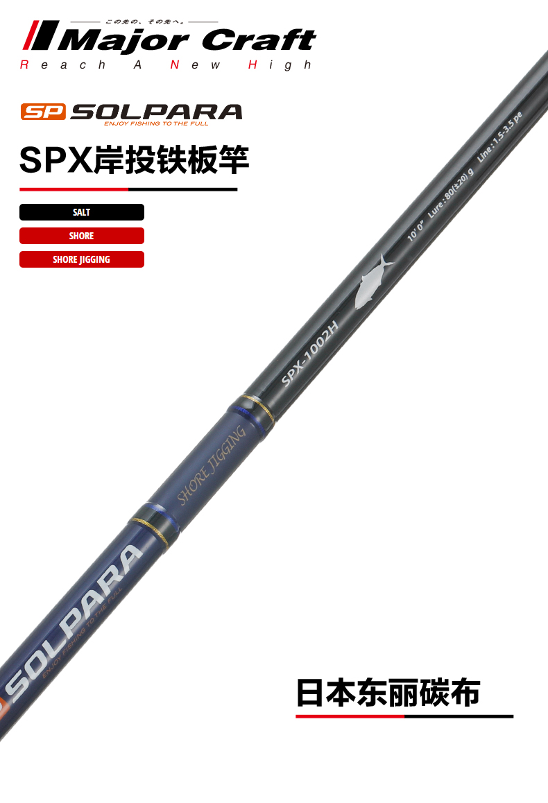 商品名称:岸钓远投路亚铁板竿MajorCraft日本马牌SPX直柄2节海钓轻量型钓杆