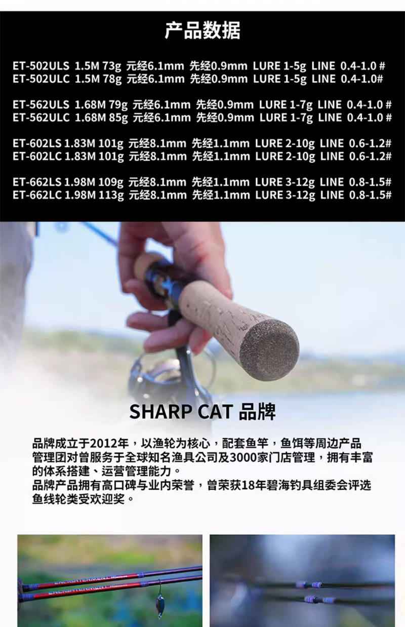 商品名称:犀利猫念道微物竿溪流马口竿UL实心单竿弹射竿直柄青春拓钓路亚竿