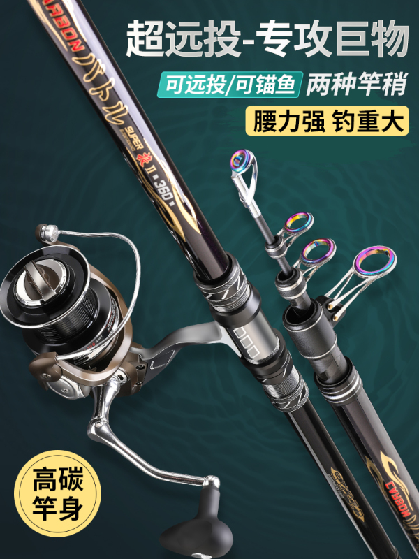 战海霸竿套装特价抛竿远投竿鱼竿套装超硬碳素海钓竿海杆渔具组合