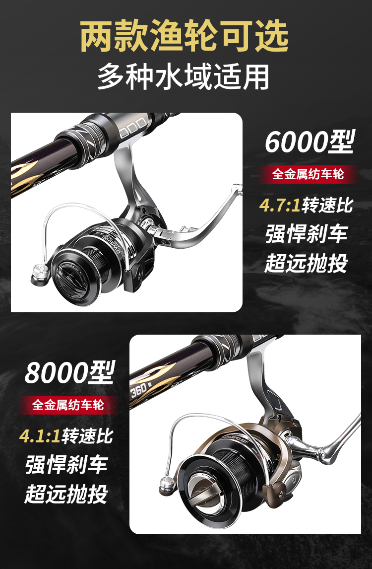 【轻硬钓远投专用】3.6m单竿+全金属8000型渔轮套装