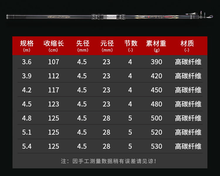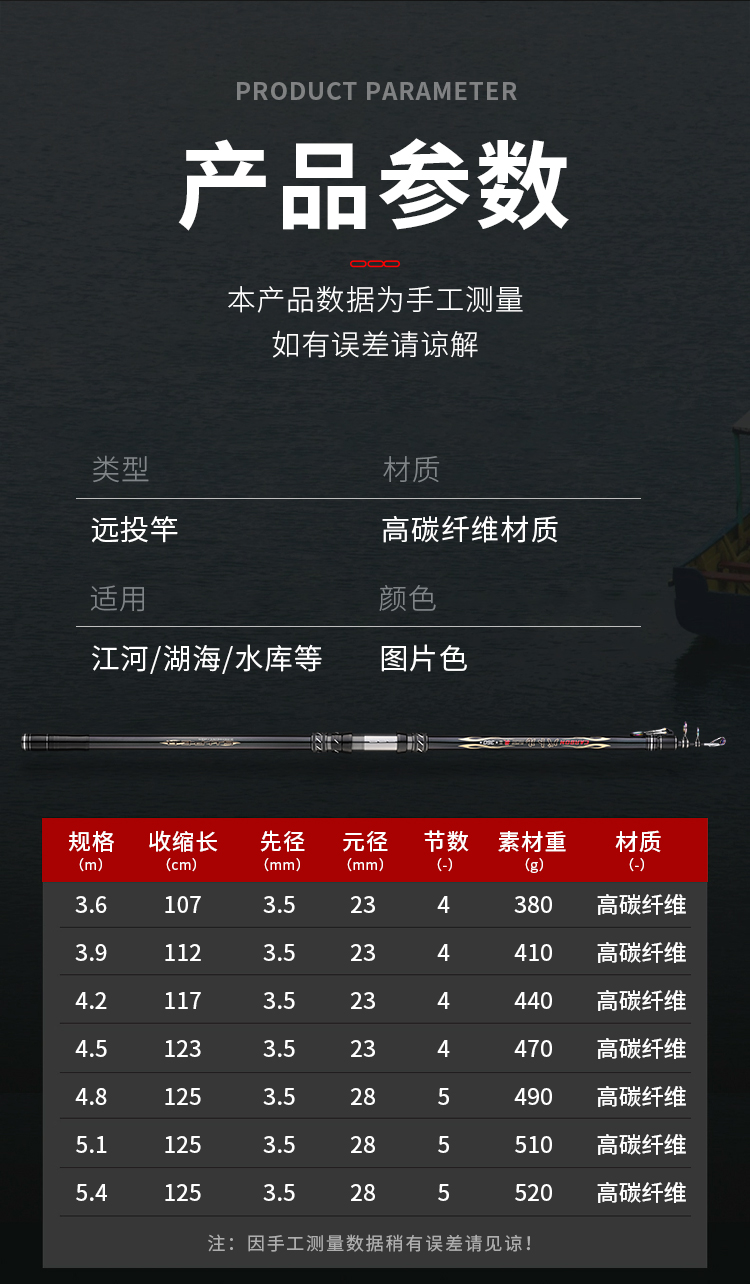 【轻硬钓远投专用】5.4m单竿+钓断包赔