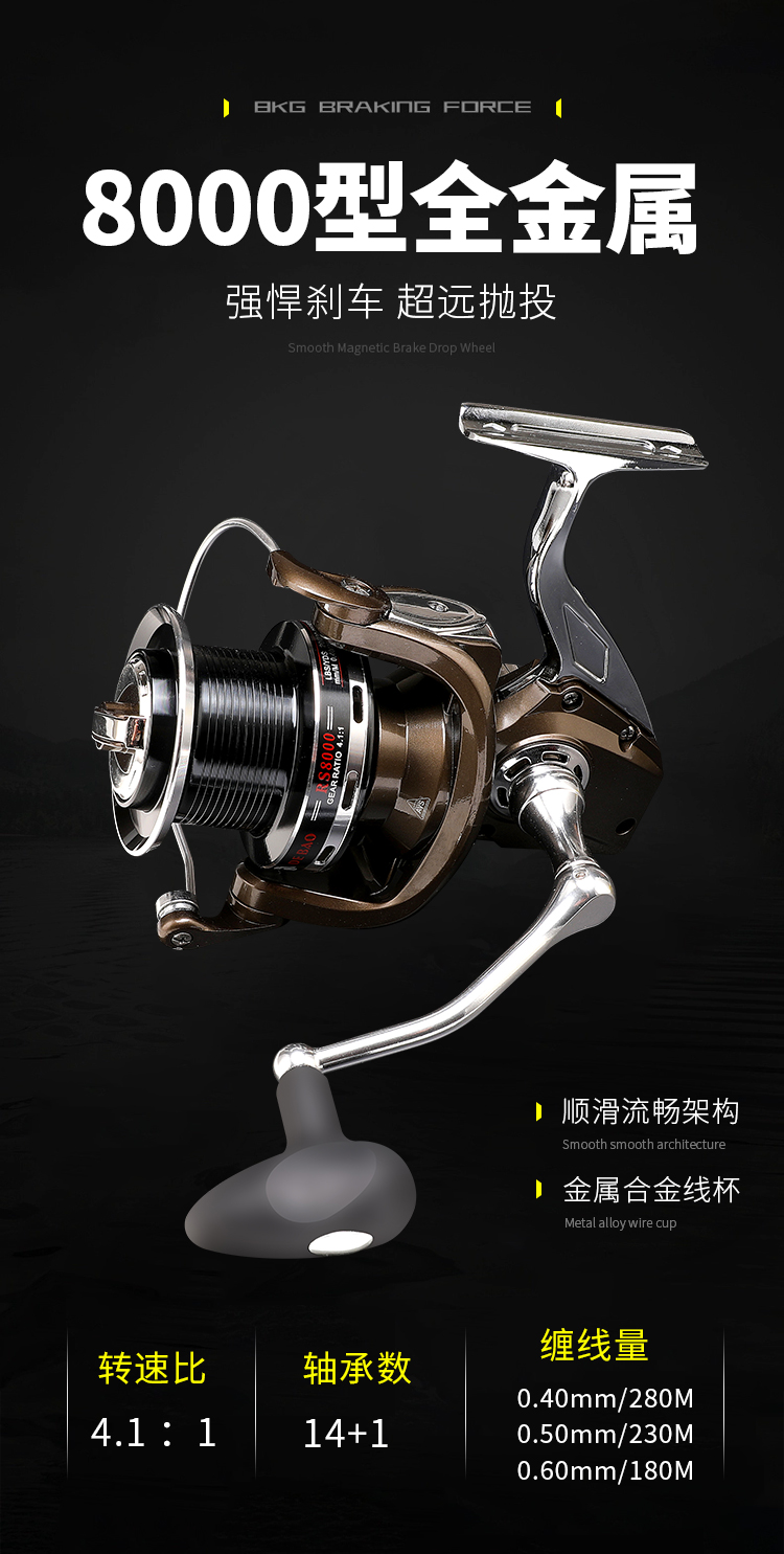 【轻硬钓远投专用】5.0m单竿+全金属8000型渔轮套装