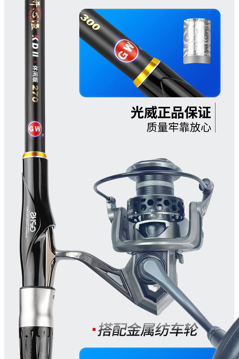 【19调】光威天峰投2.7米+开心渔SSG金属3000纺车轮+钓鱼配件