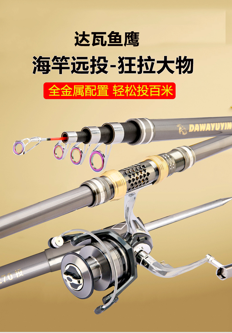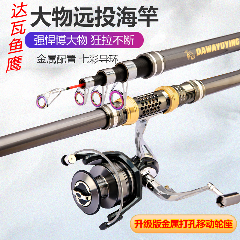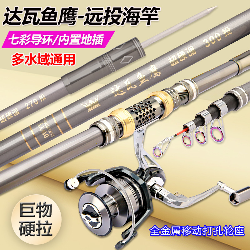 达瓦鱼鹰远投竿海竿碳素超硬远投竿鱼竿海钓海杆抛竿套装裸竿全套