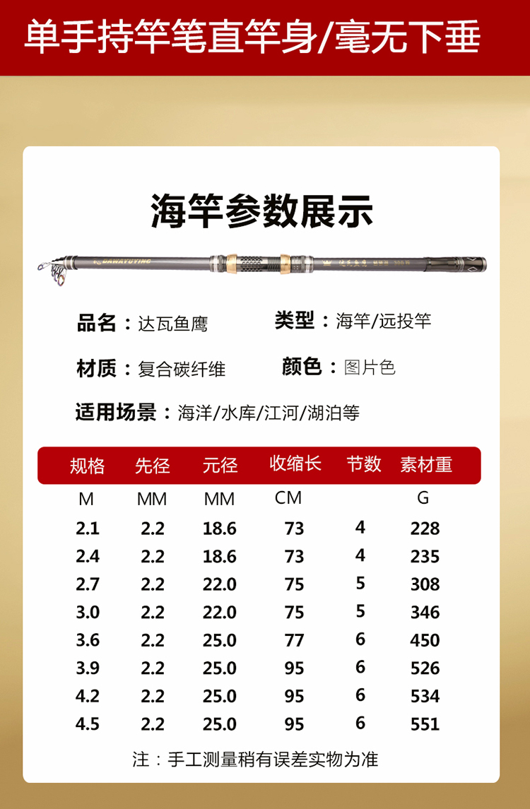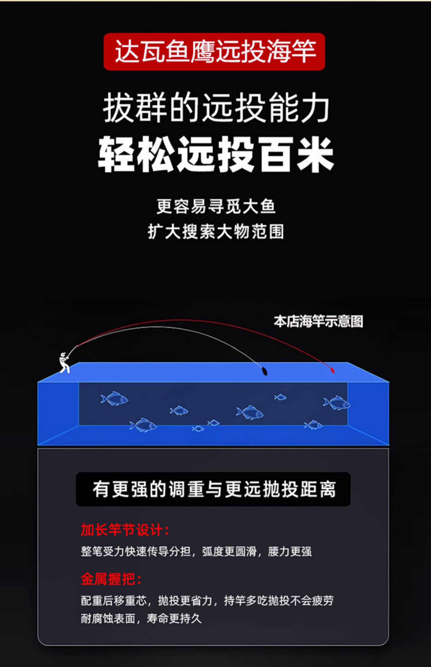 商品名称:达瓦鱼鹰远投竿海竿碳素超硬远投竿鱼竿海钓海杆抛竿套装裸竿全套